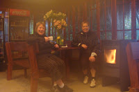 We called it quits after 9 holes as it was already getting late and they were bringing the flags in behind us. Sarah’s knees were hurting and my chest was getting no better. We bowled into the club rooms for a beer and the way it went quiet we suspect we were not meant to be in there or something, too bad. Our caddies came in too and we shared a few cold beers.